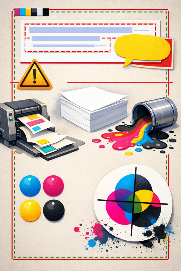 Textos fora de margem, ausência de sangria, cores incorretas ou imagens em baixa resolução são problemas comuns — e caros.